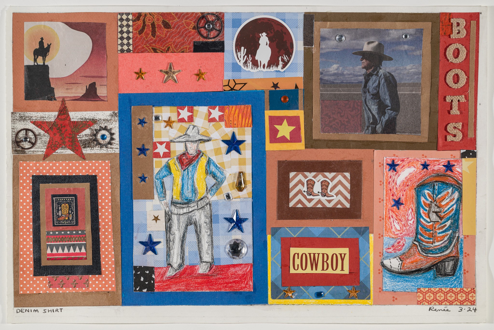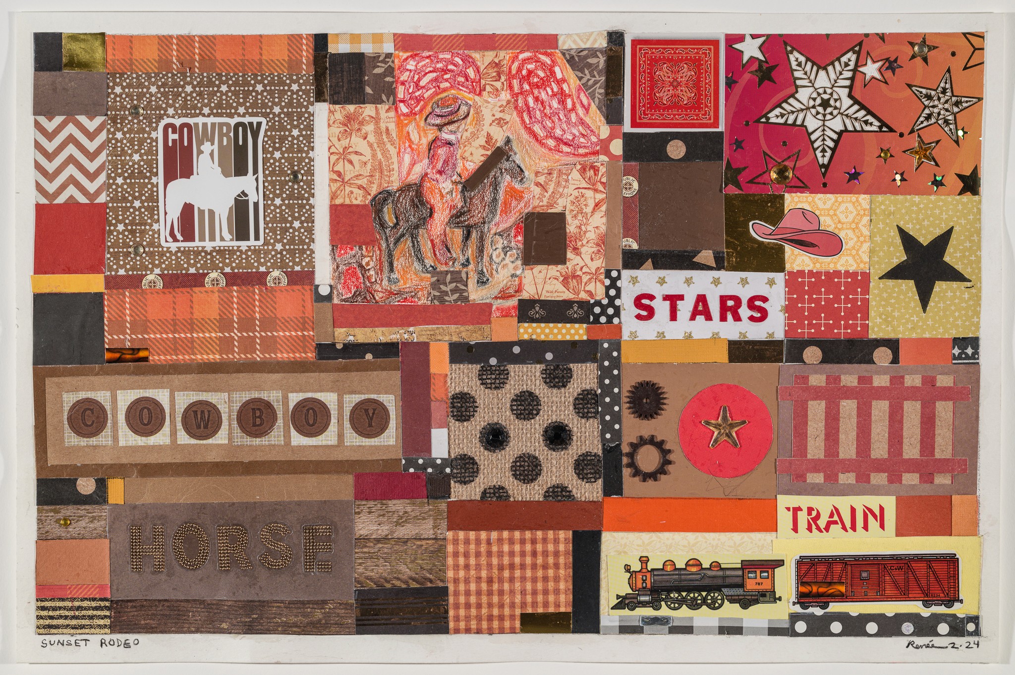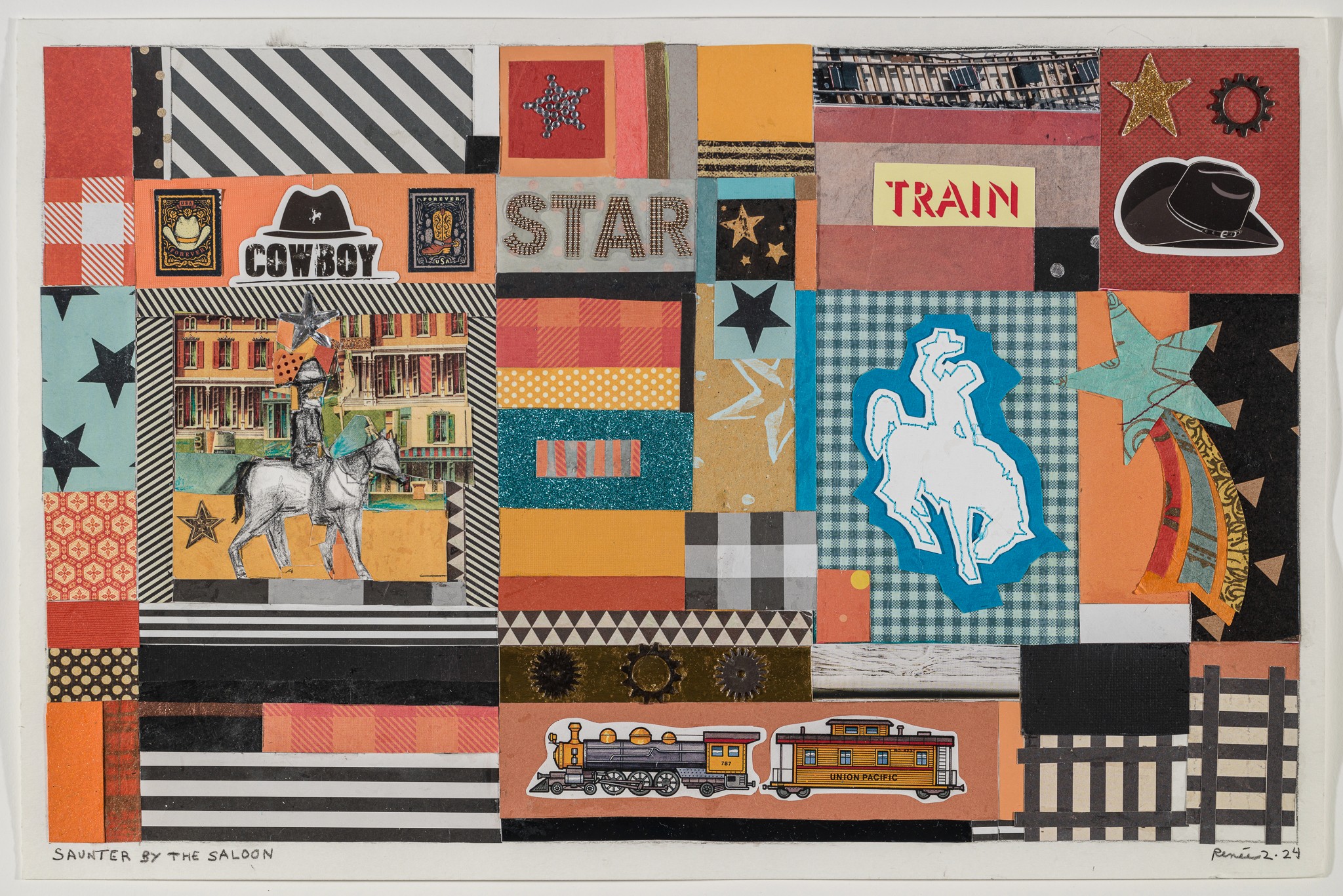 The combination of nature and history is at the heart of this body of work. I was particularly struck by the contrast between the mechanical force of the trains, the rugged figures of the cowboys and the delicate, unexpected presence of butterflies-symbols of transformation and fragility.